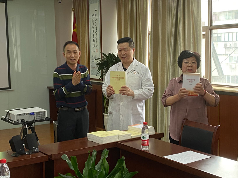 为庆祝中国共产党成立100周年,重温中国共产党光辉历程,推动全院广大职工深入扎实学好百年党史,做到学史明理、学史增信、学史崇德、学史力行,学党史、悟思想、办实事、开新局,四川中医肝病医院于4月27日下午开展“学党史,知党情,跟党走”党史知识竞赛,参与此次活动的党员干部有蜀汉街社区党委邱春书记和胡挺副书记、四川中医肝病医院党支部书记罗丽芬、四川中医肝病医院王积分院长、蔡邦镇院长等同志。